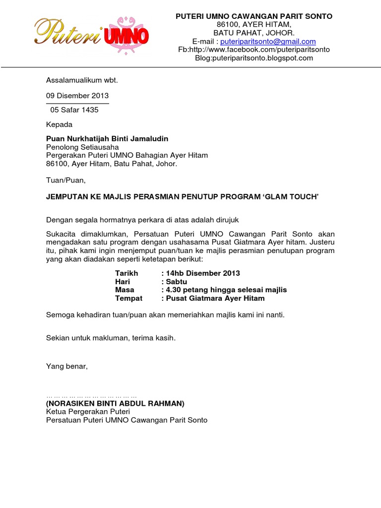 Surat Rasmi Jemputan Ke Majlis Penutup