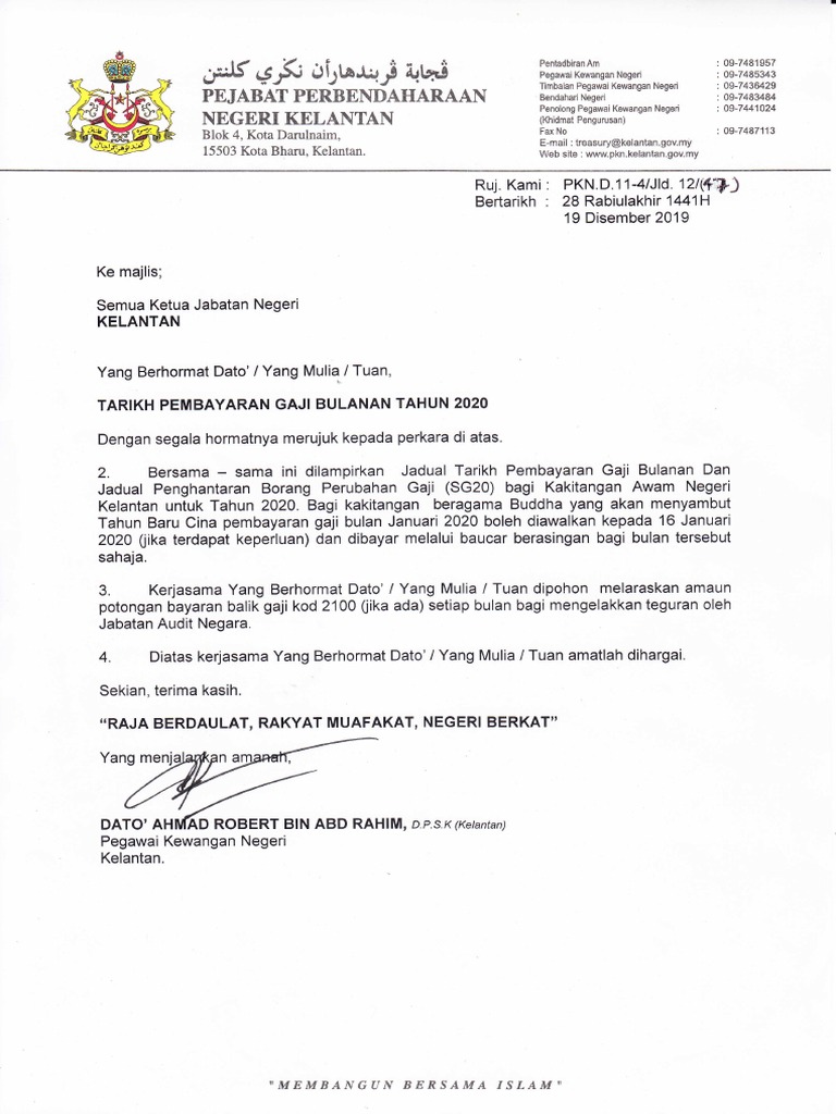 Jadual Tarikh Pembayaran Gaji 2020 Penjawat Awam (RASMI) - Pendidik2u